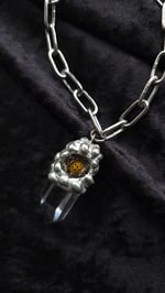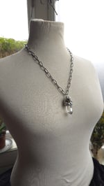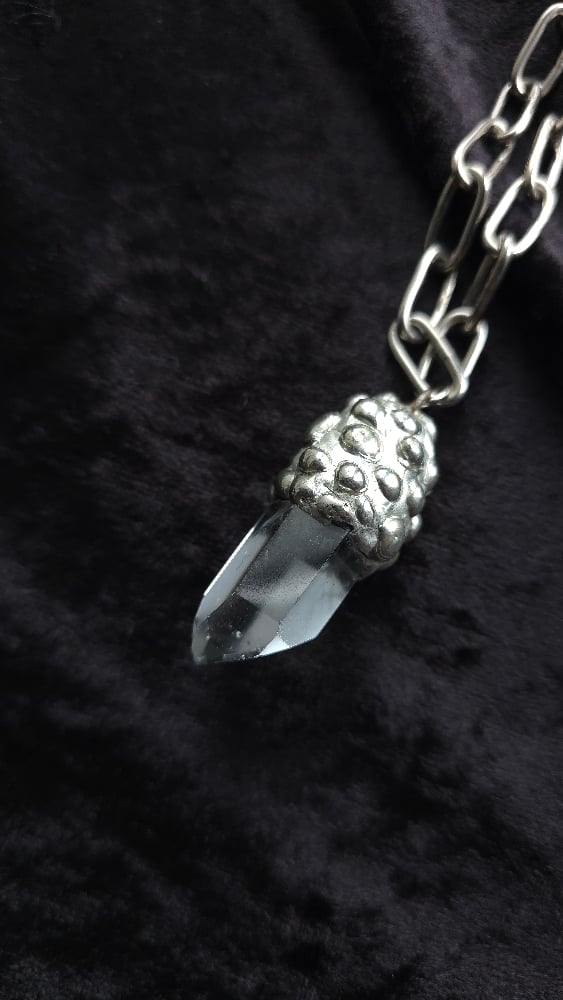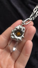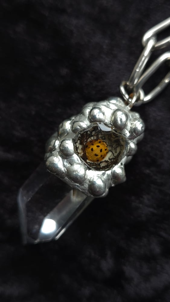 This cute pendant features a naturally deceased ladybird and foraged rasberry root from my allotment set inside resin on top of a quartz crystal, Soldered together with jewellery silver based solder (lead free)