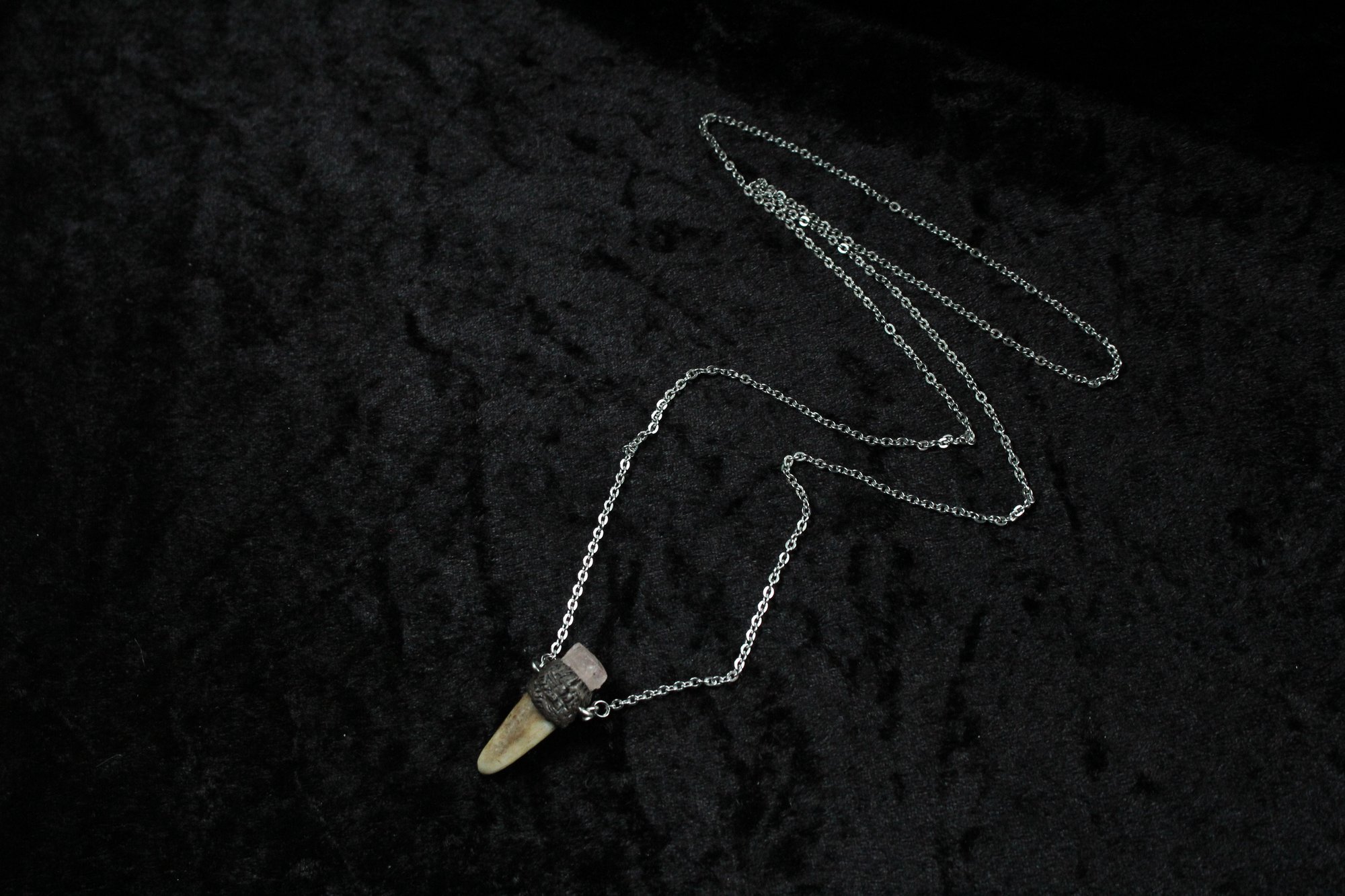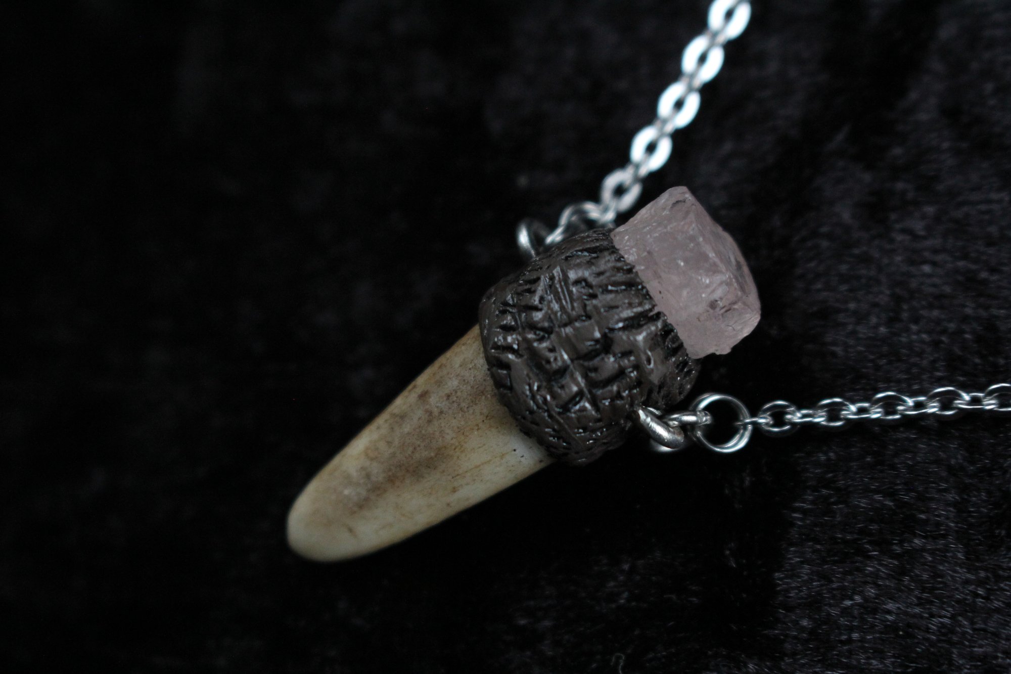 Dead Good rose quartz crystal and antler necklace
