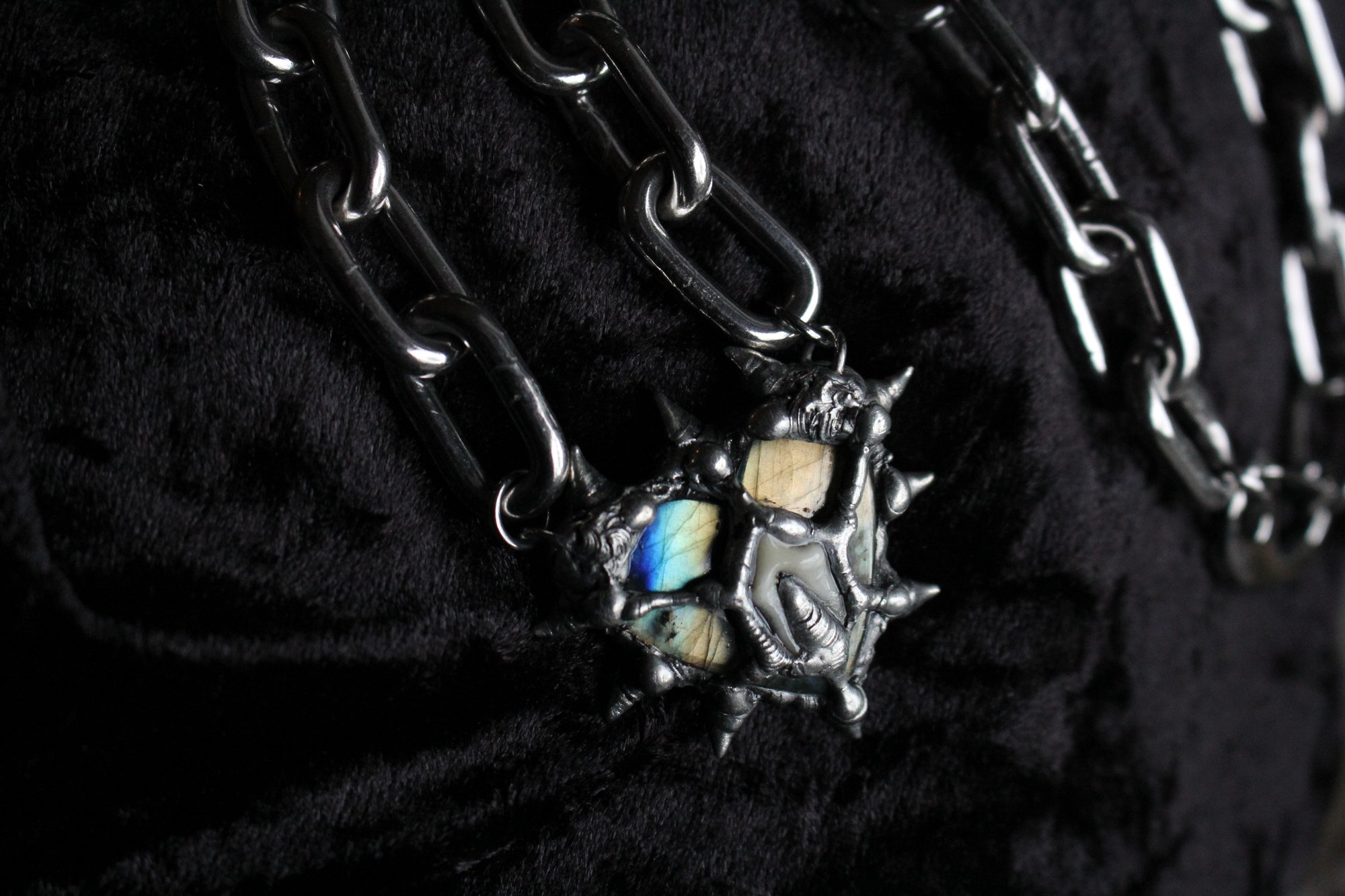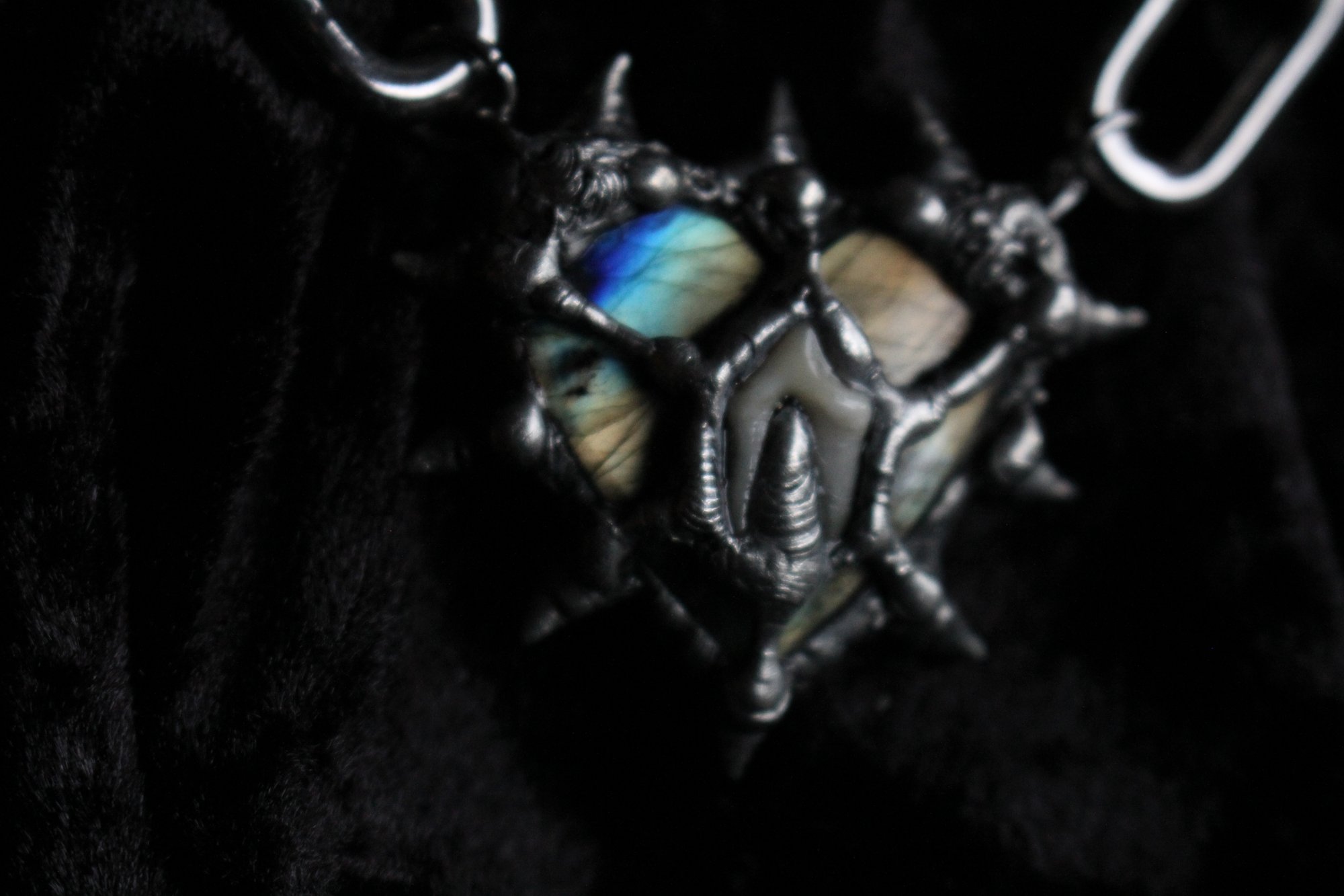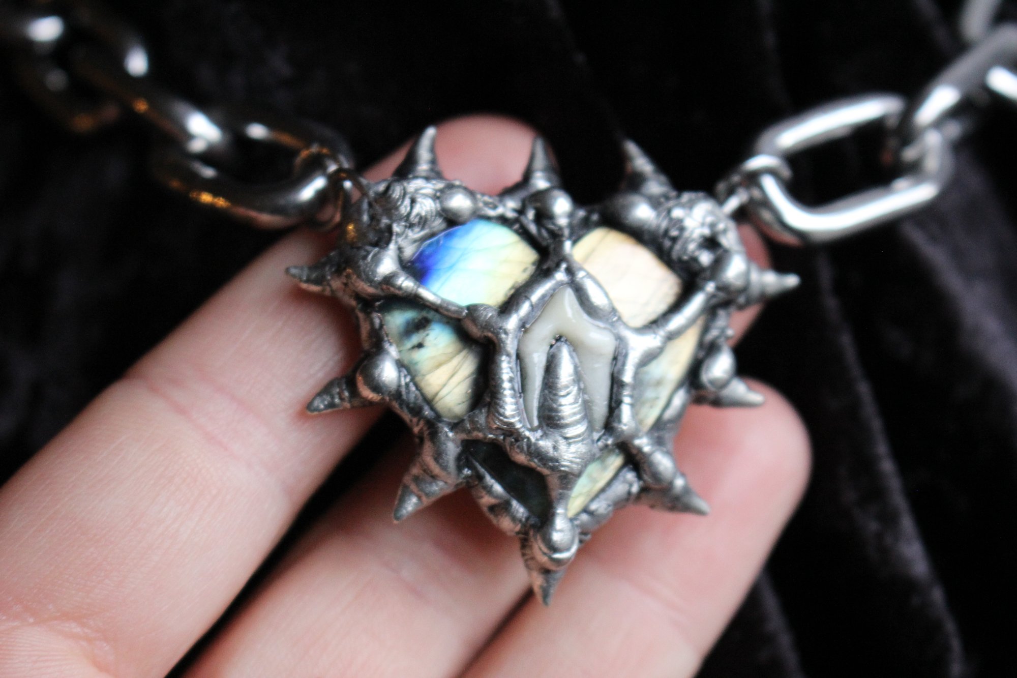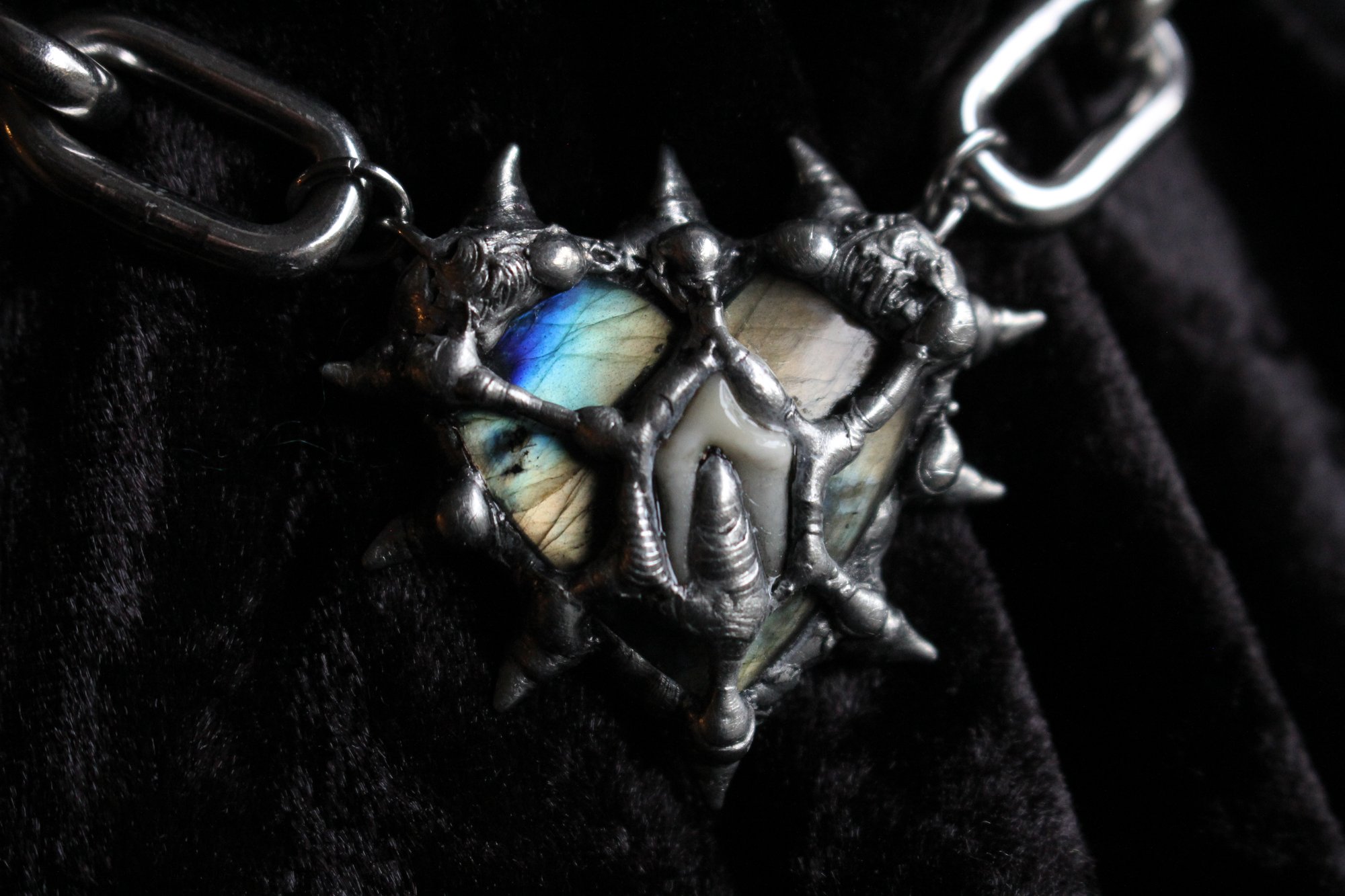 Dead Good spikey labradorite crystal heart with fox tooth