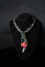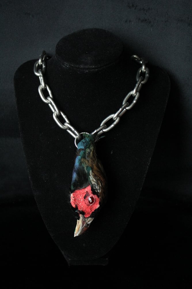 This pheasant head was from roadkill and taxidermied myself. Comes supplied with a stainless steel thick chain .