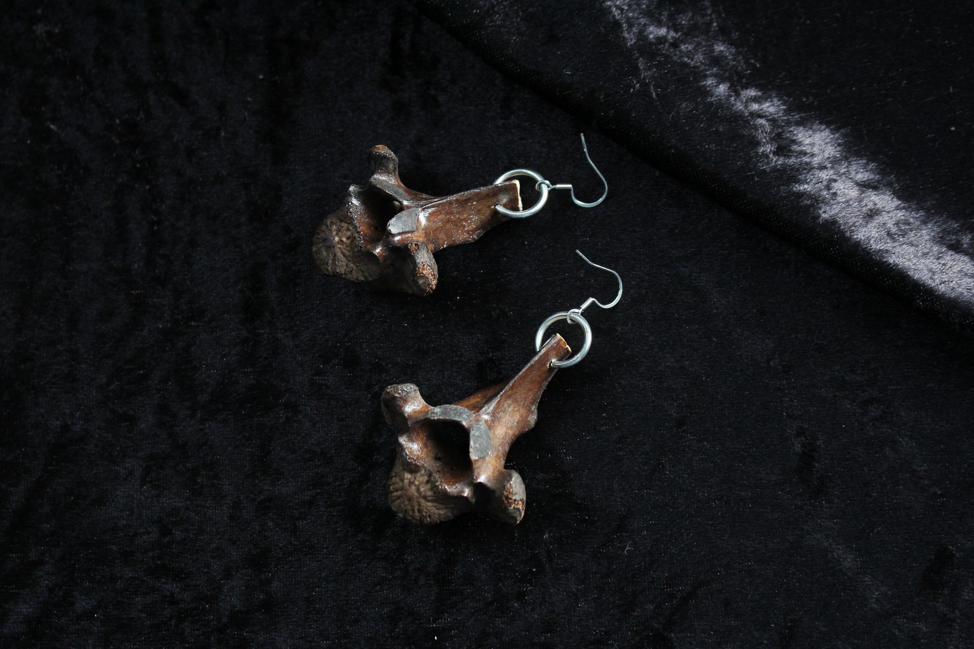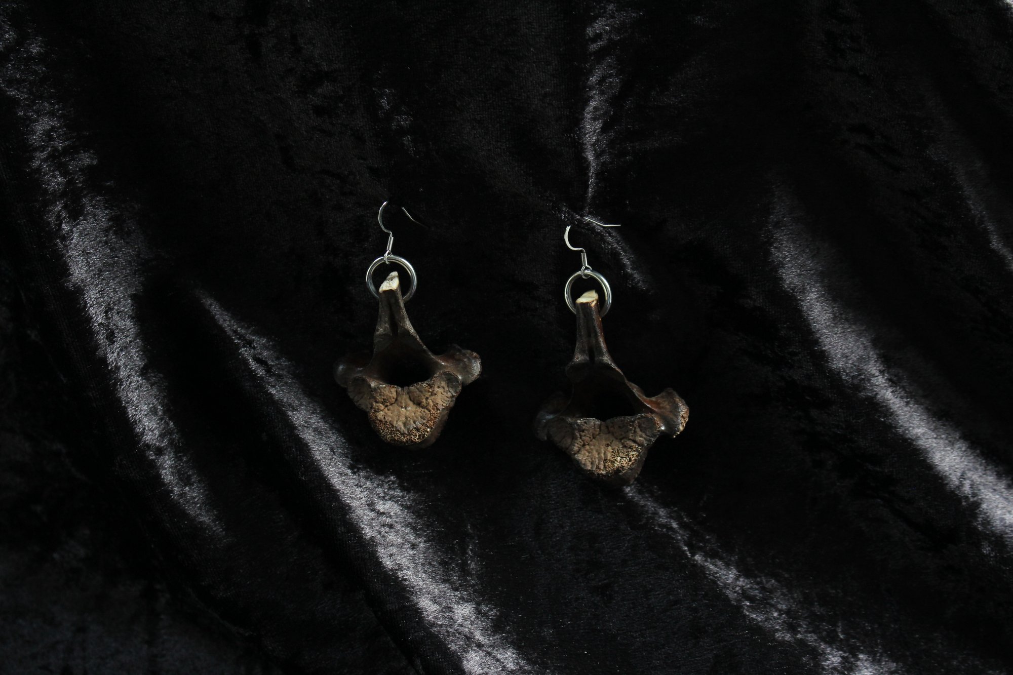 Dead good tea stained vertebrae earrings