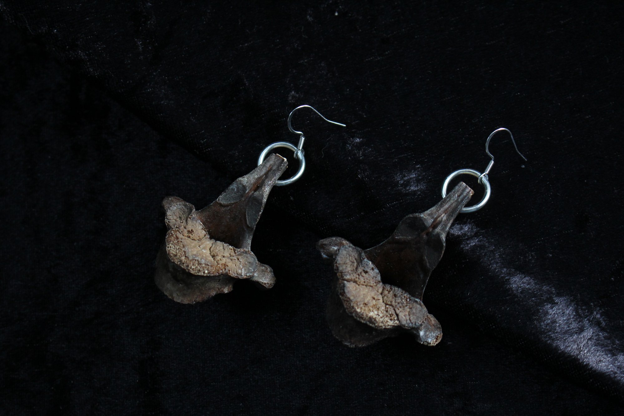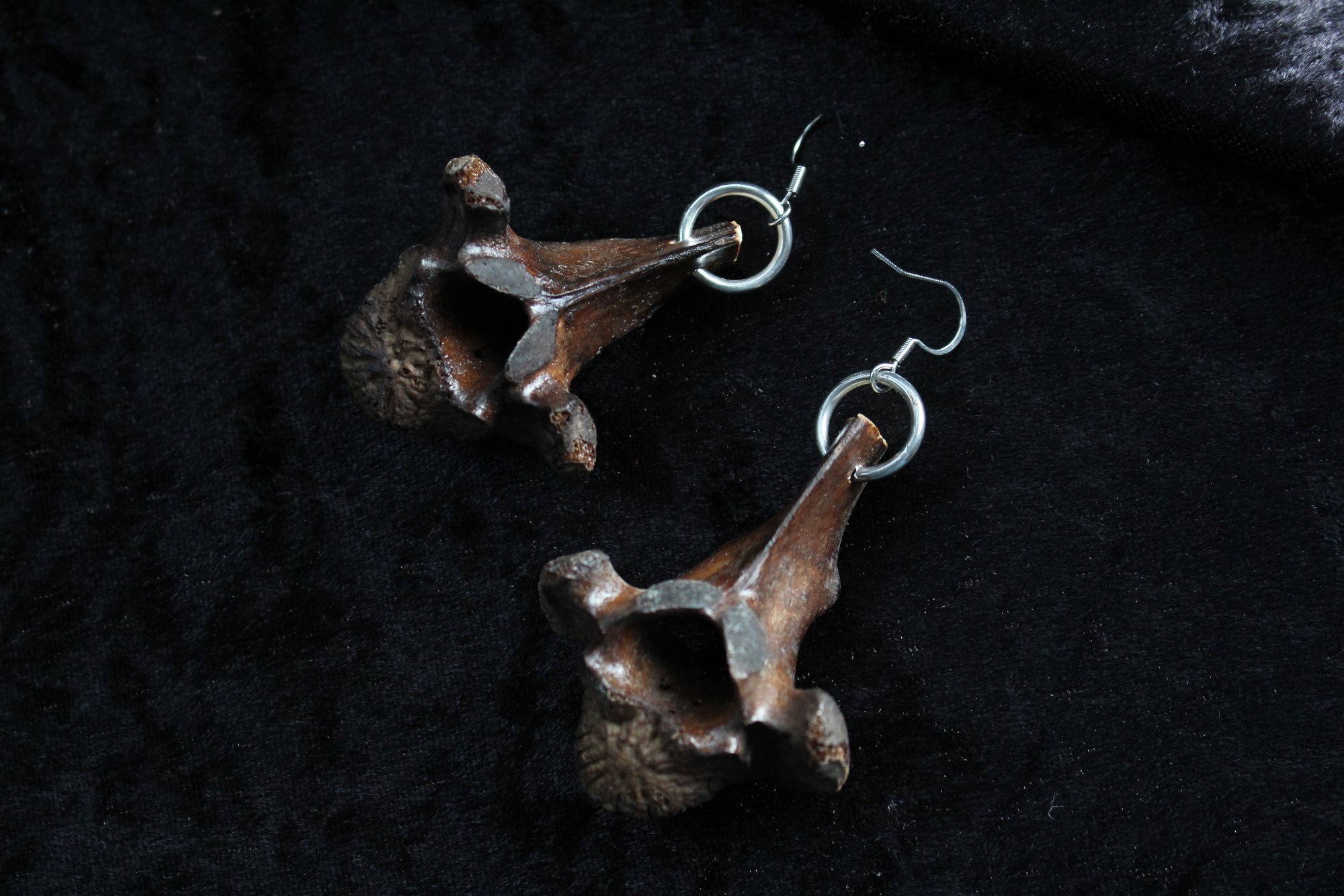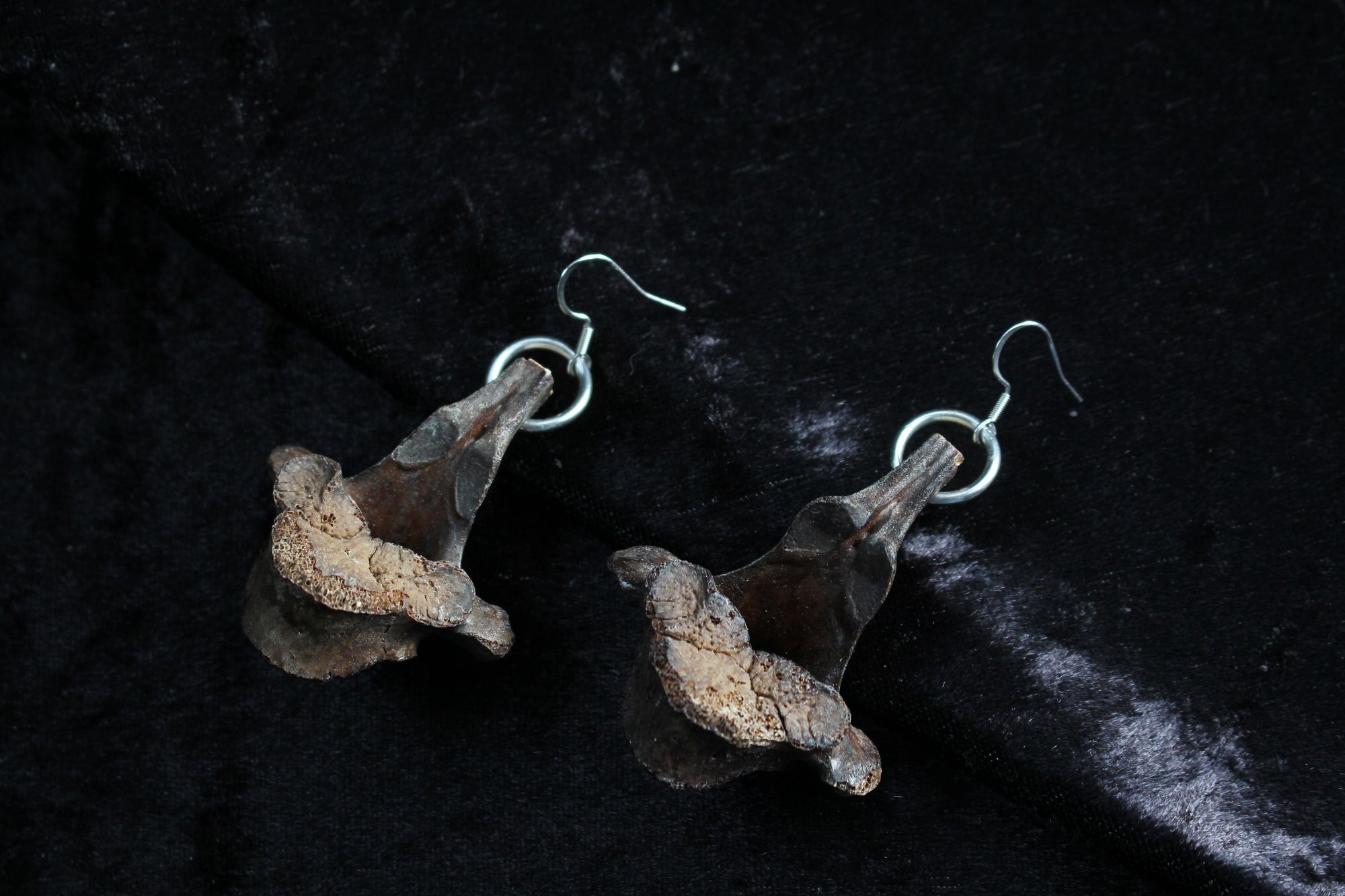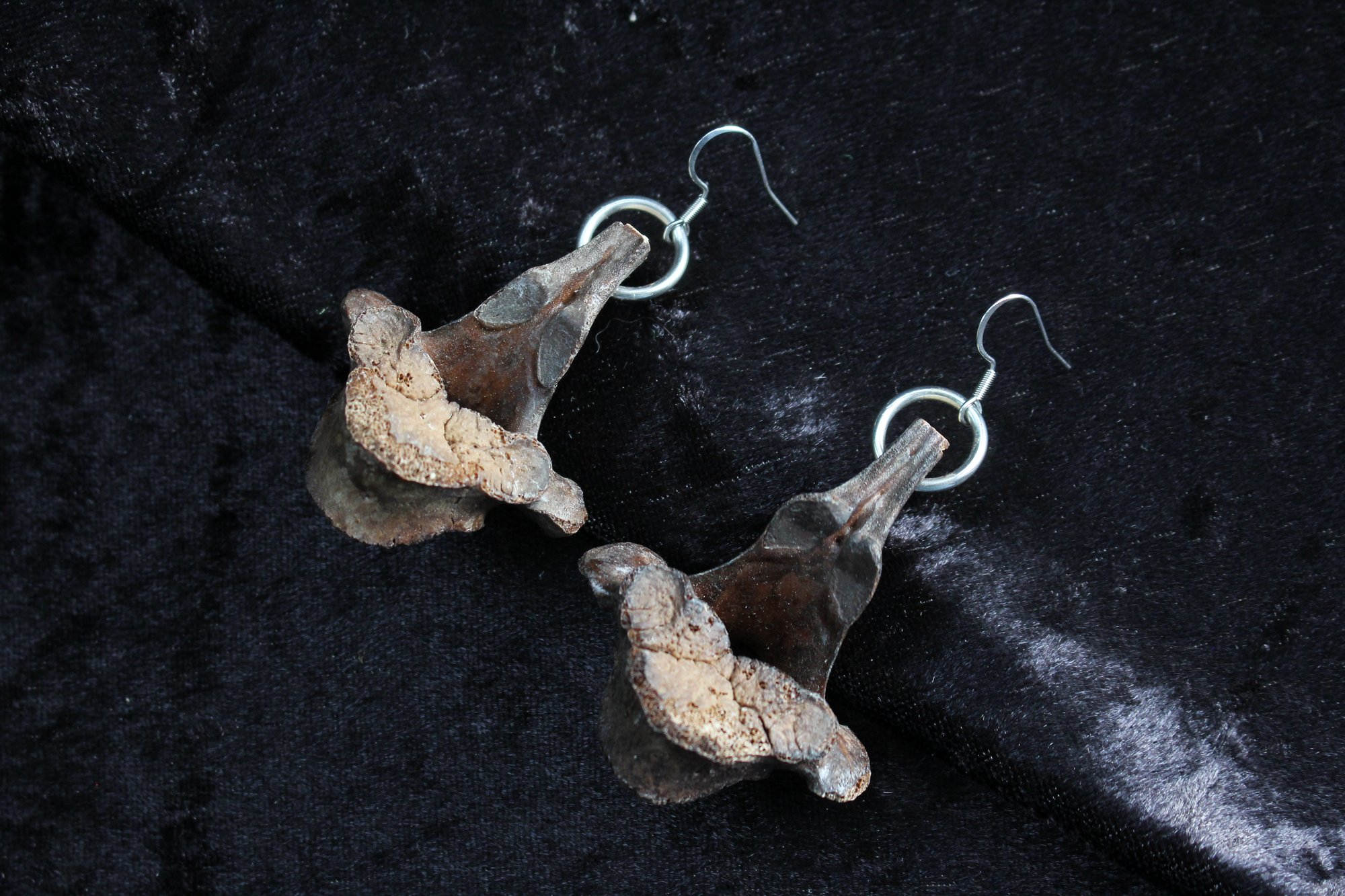 Tea stained vertebrae earrings. Hooks made from surgical steel