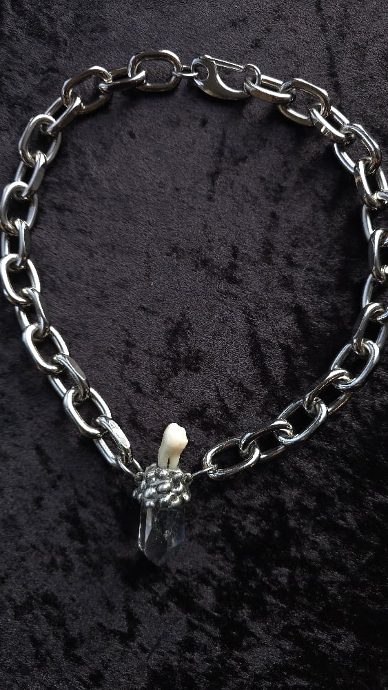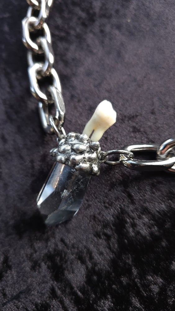 Human tooth and quartz chunky necklace