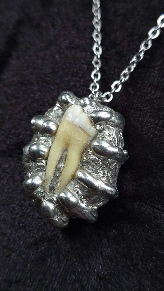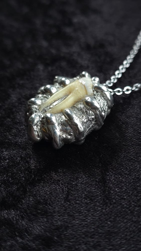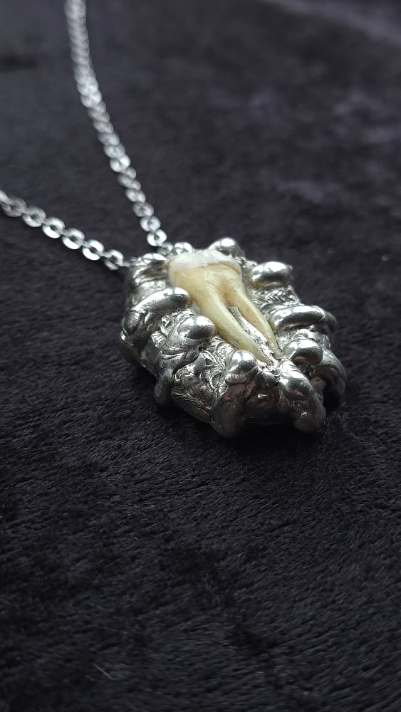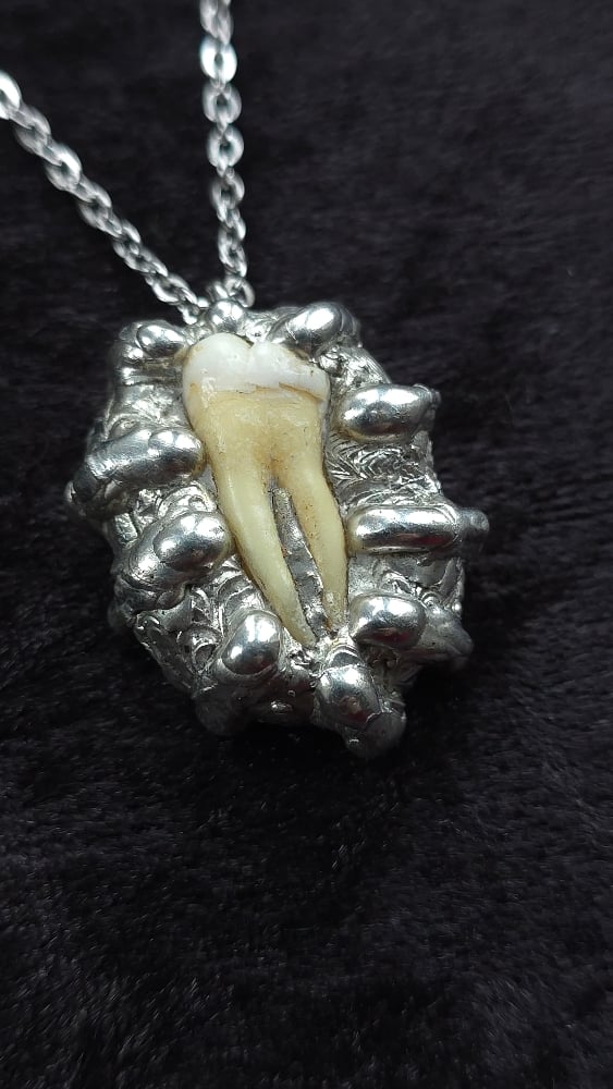 Human tooth organic soldered necklace