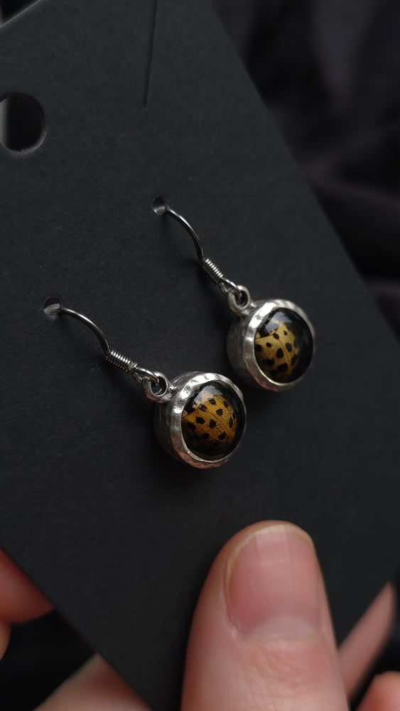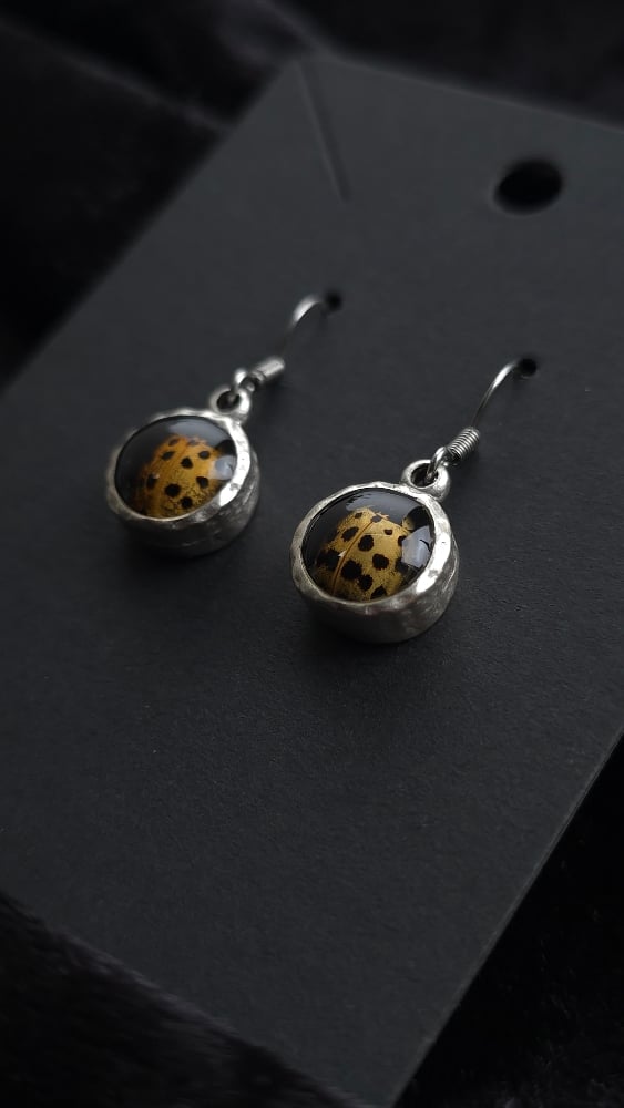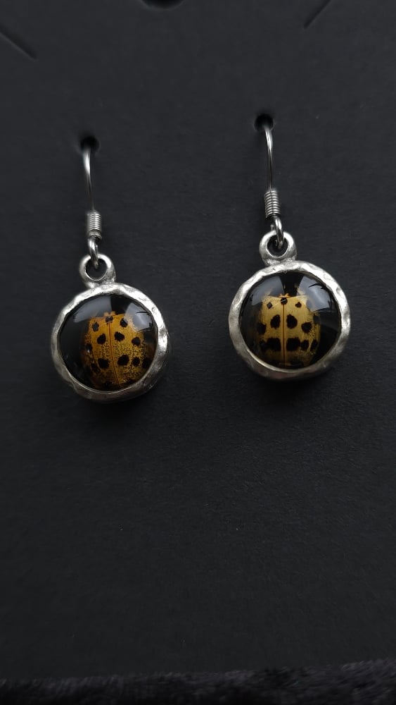 Ladybirds found naturally deceased from a ladybird infestation . Steel earring hooks