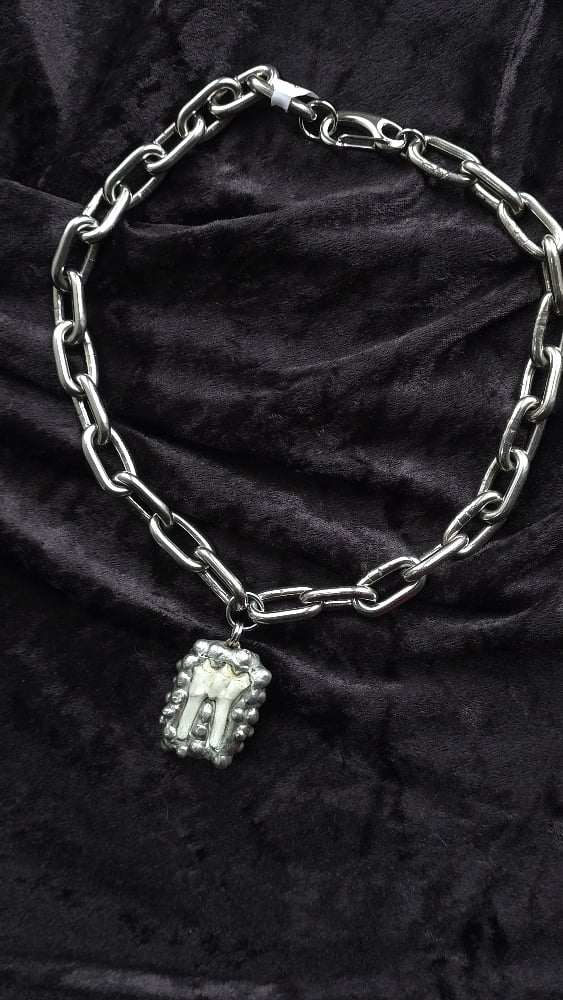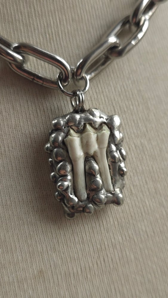 Sheep tooth soldered with silver based lead free solder on 18" chain