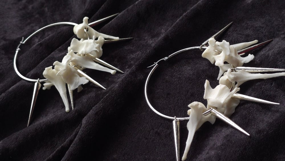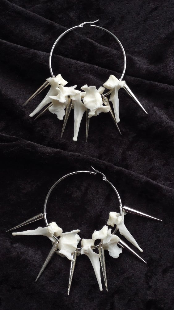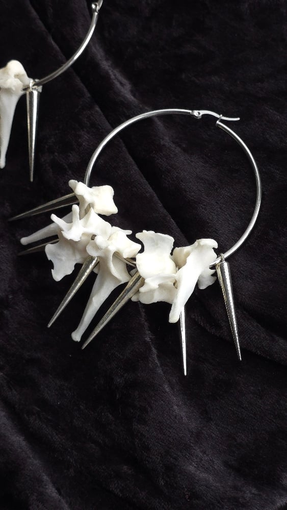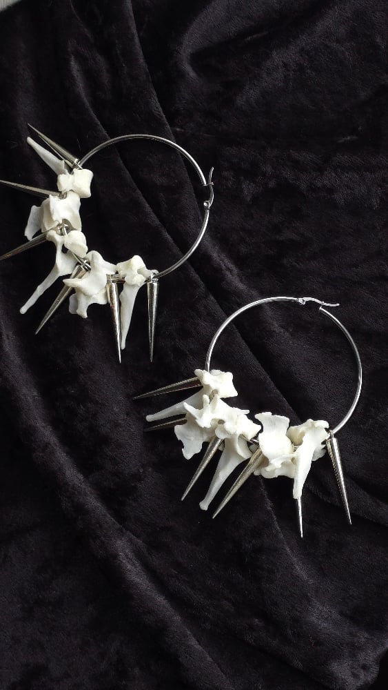 Cat Vertebrae bone spikey hoop earrings
